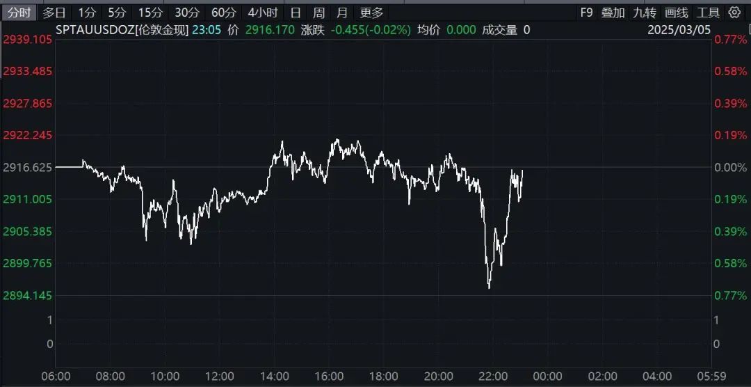 今日国际金价盘中跳水,现货黄金一度失守2900美元/盎司,日内跌幅0.65%。不过随后再度拉升,现重返2900美元上方。