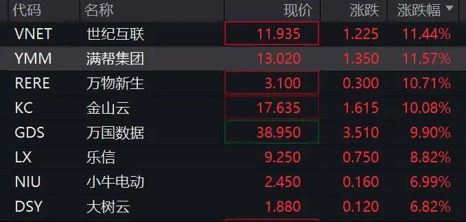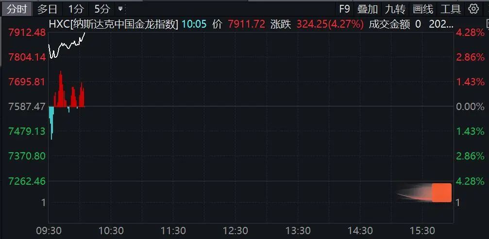 中概股拉升,纳斯达克中国金龙指数大涨超4%。