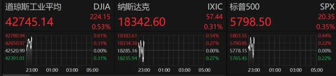 美股开盘涨跌不一,开盘后一度集体上涨,截至发稿,道指涨0.53%,纳指涨0.31%,标普500指数涨0.35%。